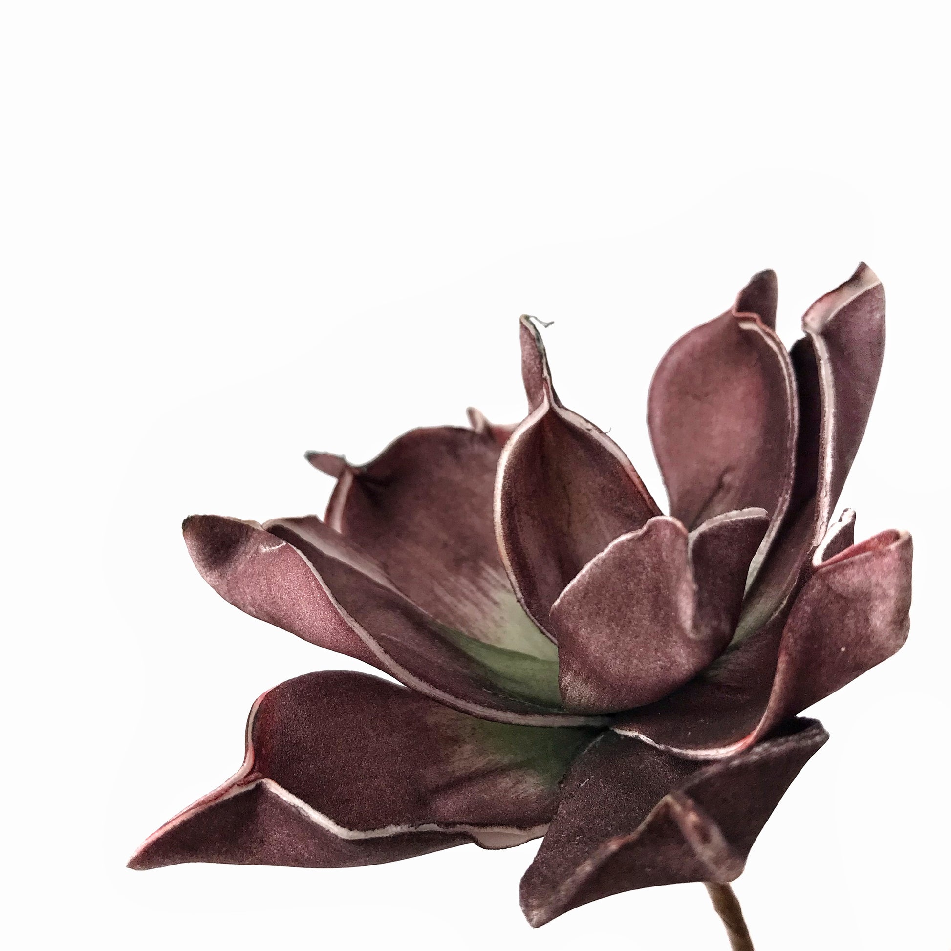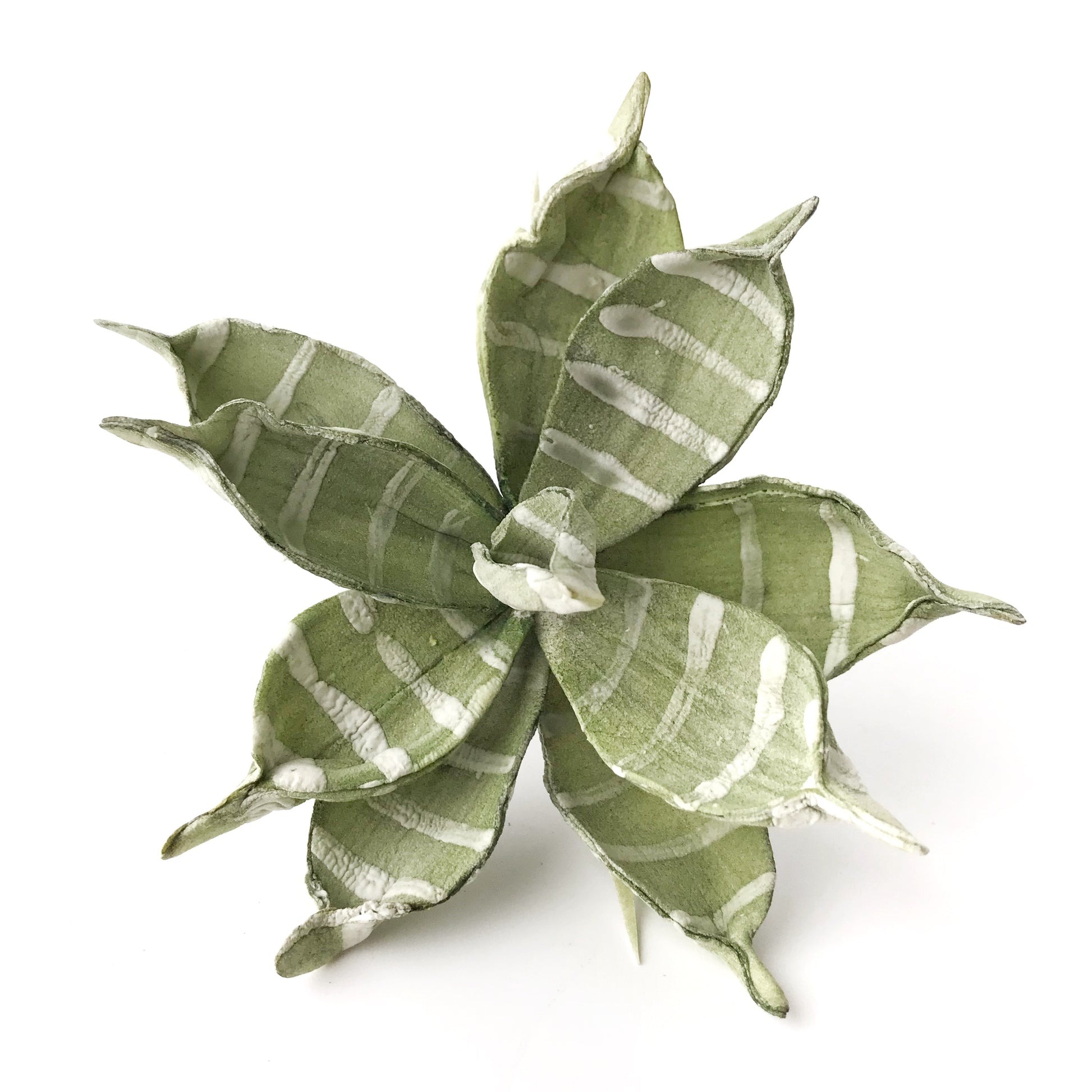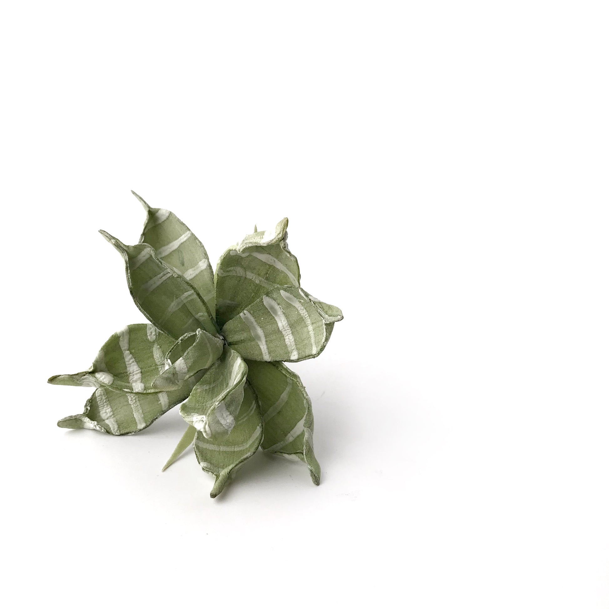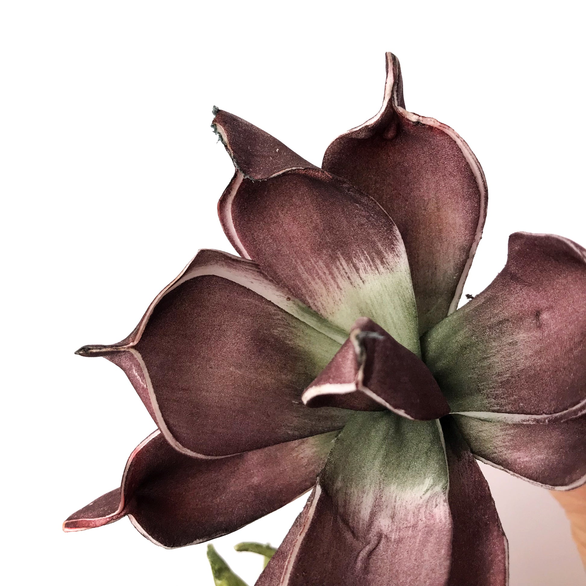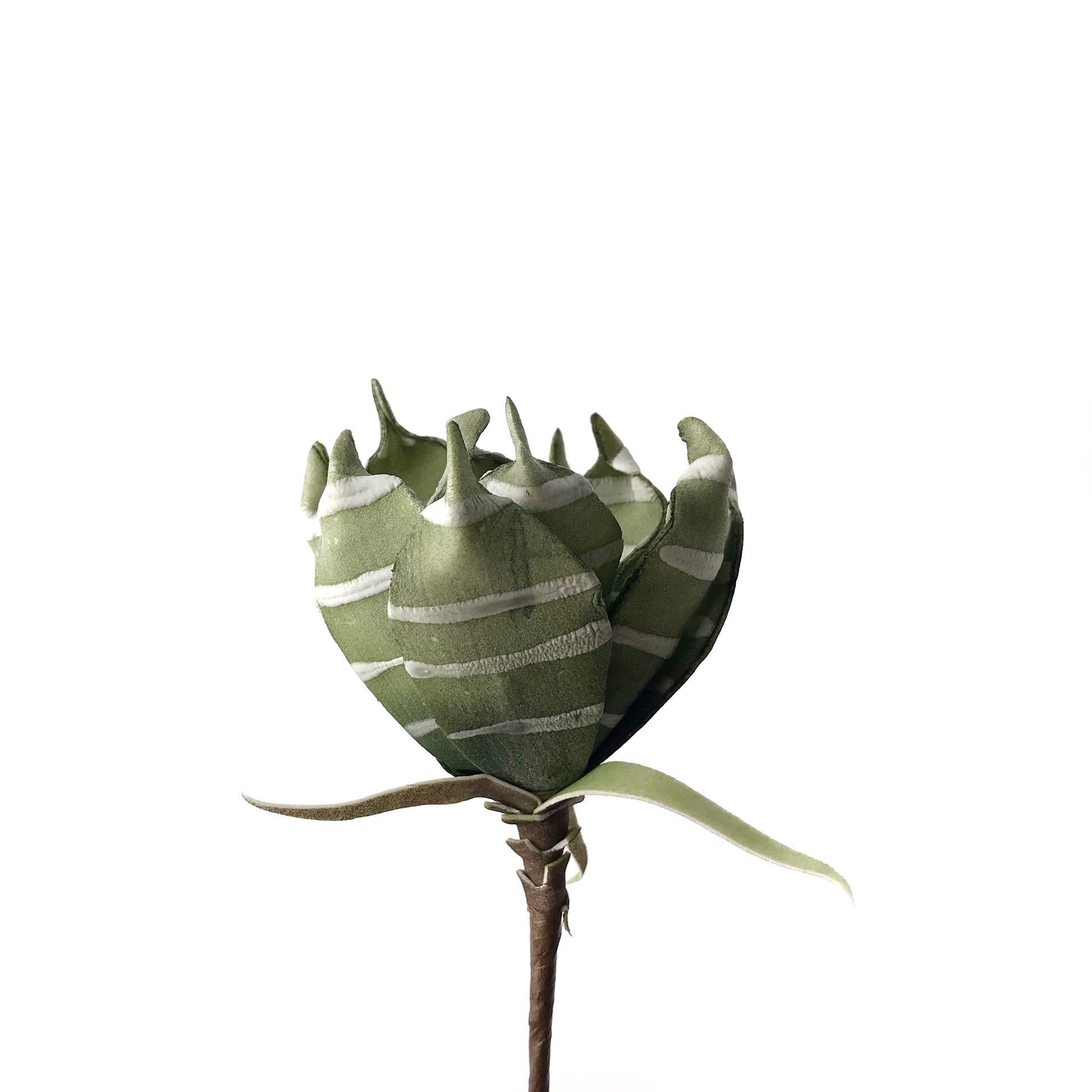 We can't get enough of these foam succulent "flowers" and we find endless uses for them around the shop. They look beautiful in an empty bud vase or plopped on a tray. They are constructed of foam with a wire interior so that they can be reshaped endlessly, from a closed "bud" to a wide open full bloom. The set includes two of each: Aloe Vera, Zebra and Echeveria.