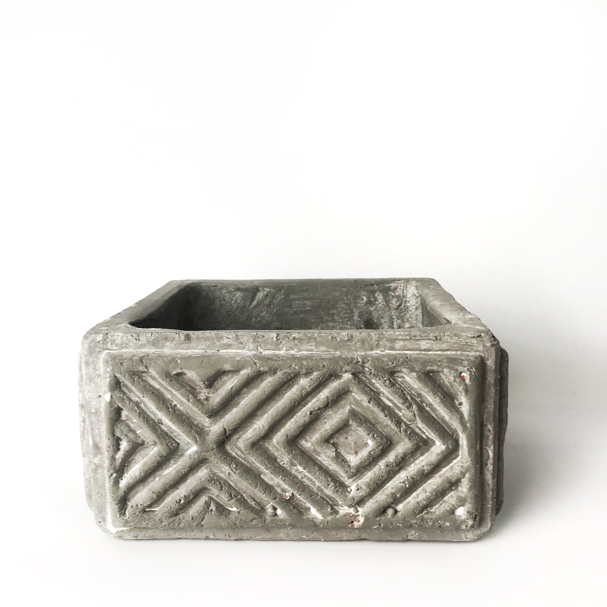 These low-slung broad pots are perfect for a group of cactuses or a small bonsai. Made of cement, they can be used outdoors or as a nice rustic touch on a coffee table.
