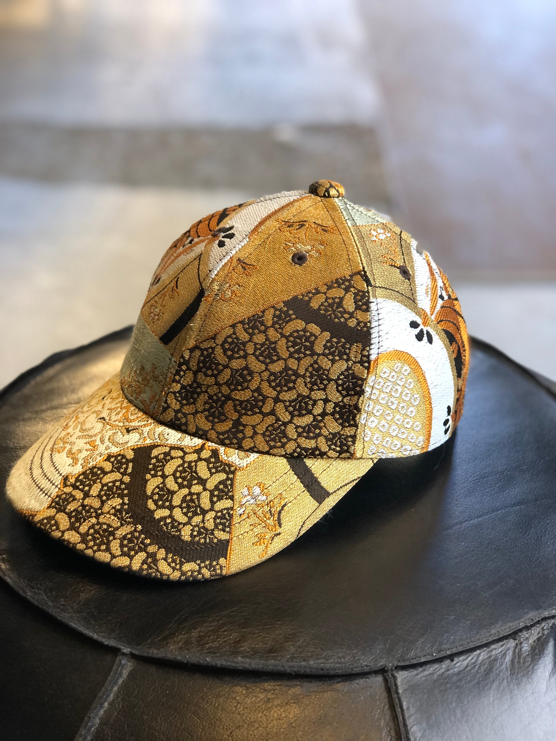 Don't think you'll find a more beautifully dramatic baseball-style hat anywhere! Made of fine brocade antique kimono fabric and lovingly crafted in Japan. Size can be adjusted from 54cm to 58 cm (small to medium).