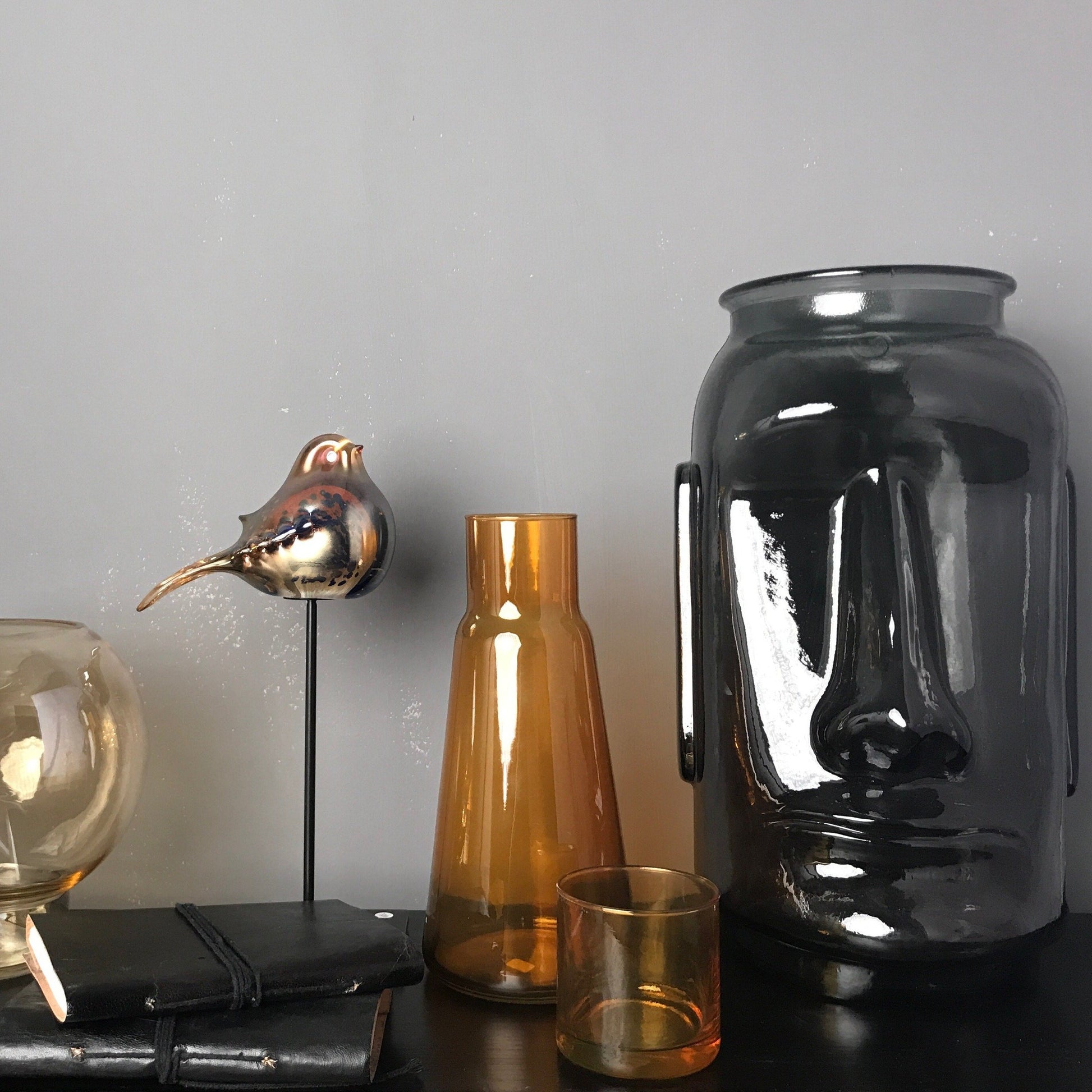 This bold glass vase, molded into the shape of a Moai head, comes in four colours. It adds loads of personality to any space and can be filled with branches or flower arrangements or left as-is. The Moai vase is manufactured in a small factory in Valencia, Spain and is made of 100% recycled glass.