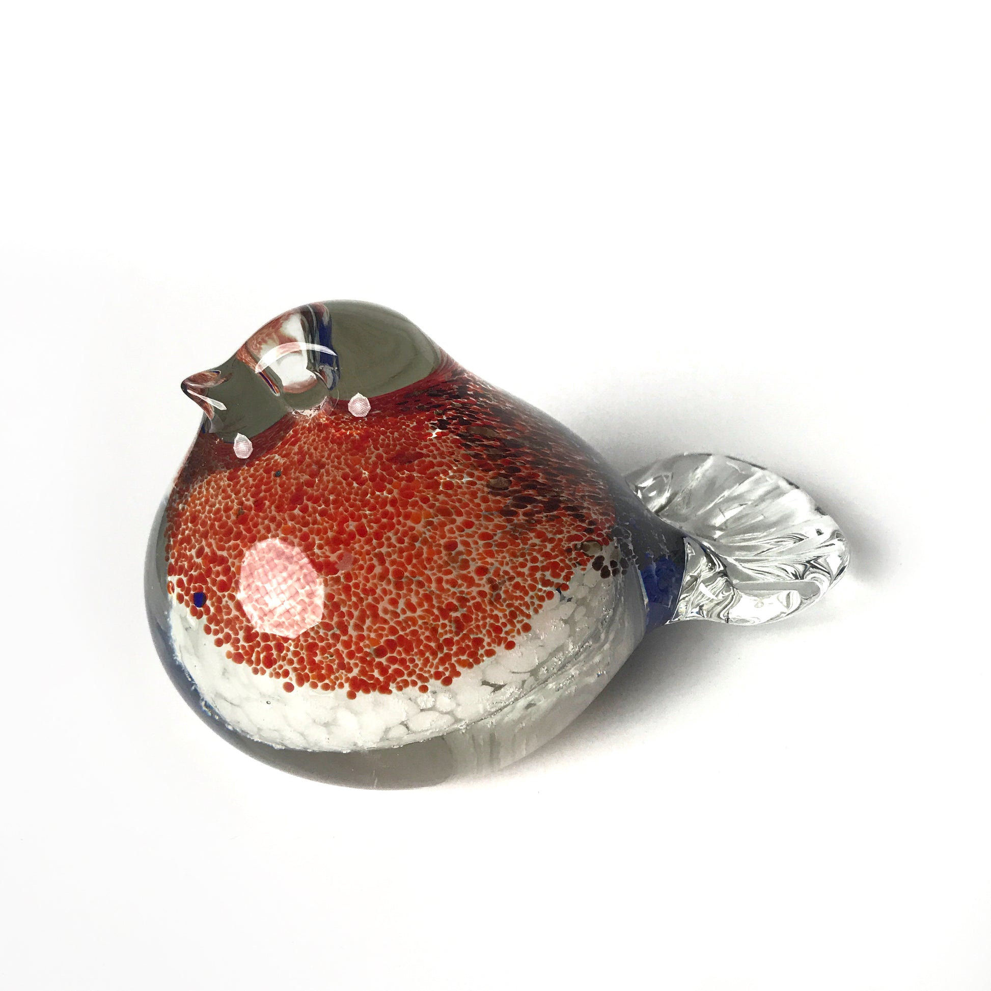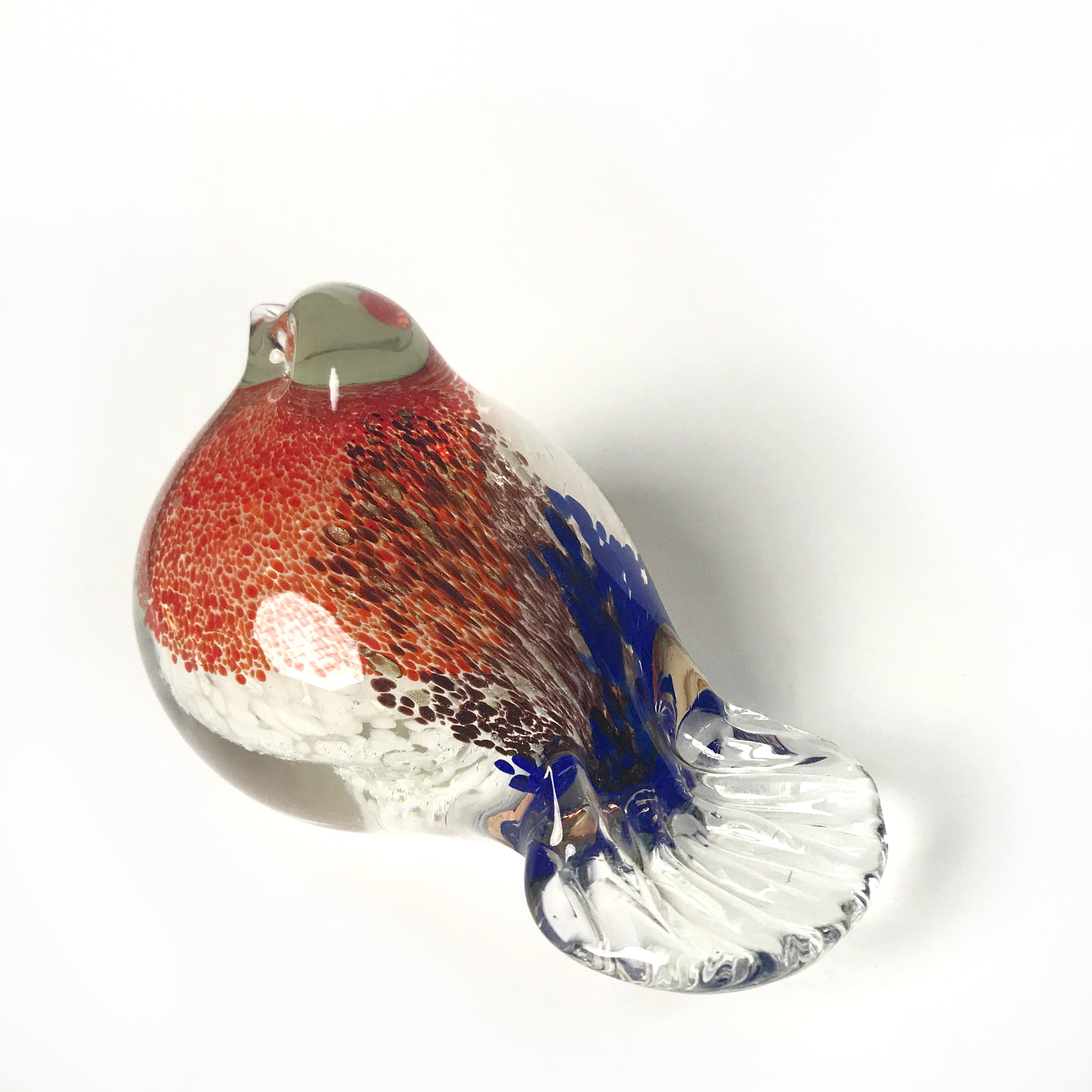 We love all our glass birds but this one has a lovely color combo that seems just right for summer. She's beautiful holding down important papers or looking lovely on a table or shelf. As they are made of handblown glass each bird may show minor variations.