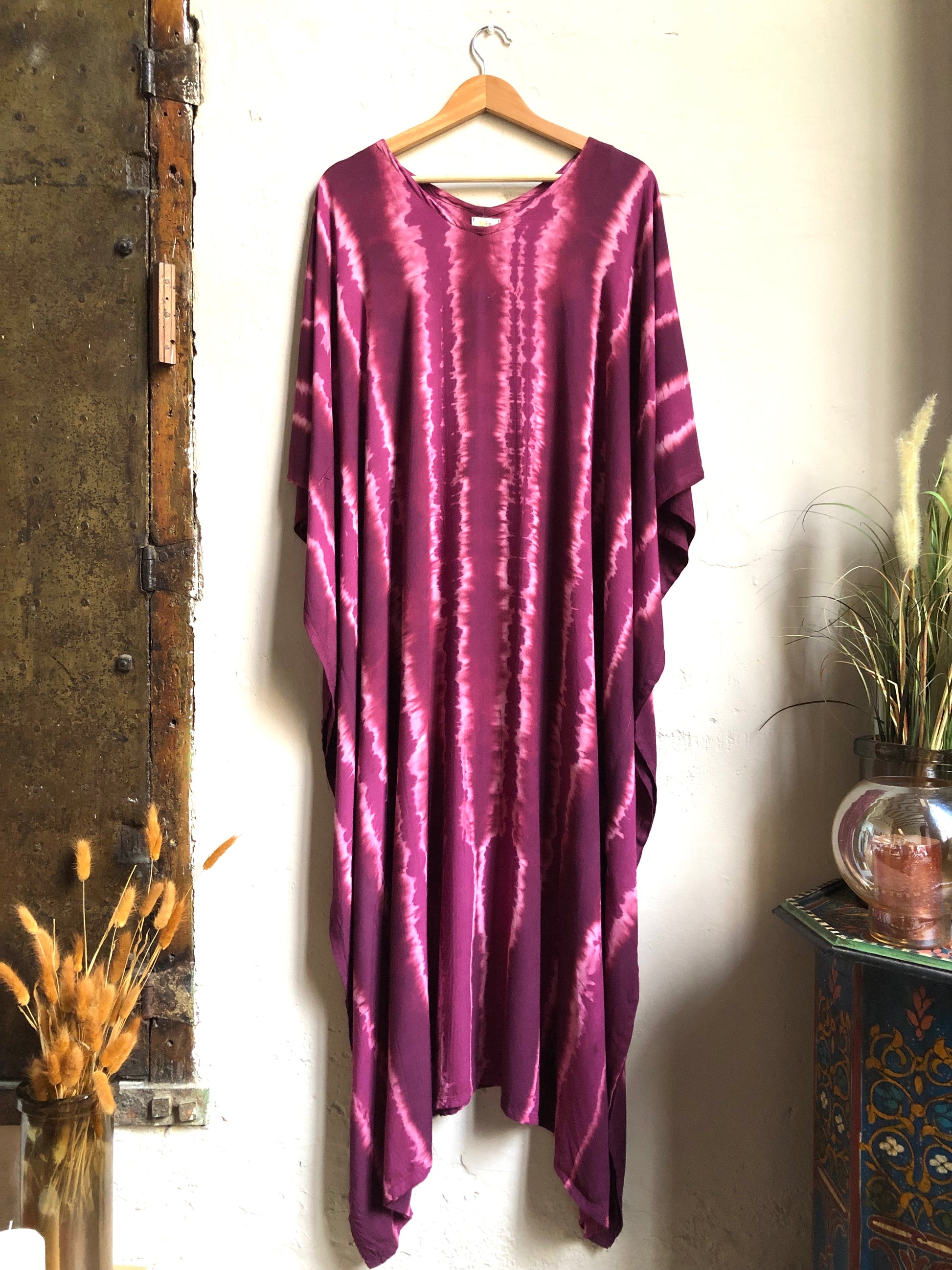 You'll feel like a goddess in these elegant kaftans. Your body feels light and free underneath as the soft rayon fabric flows ever so gently. Hand-tie-dyed with care by a small family-run production in Thailand, the colors and patterns are unique on each piece. They are one size fits all. The model in the video is 175cm/5ft.9in.