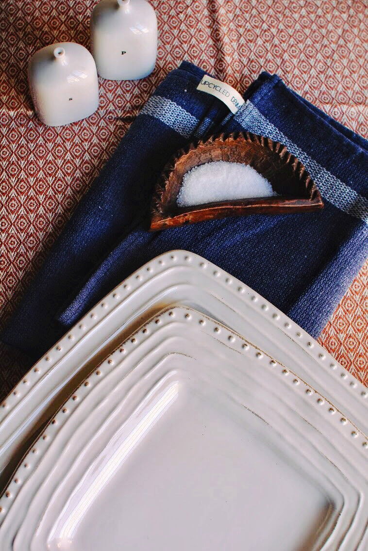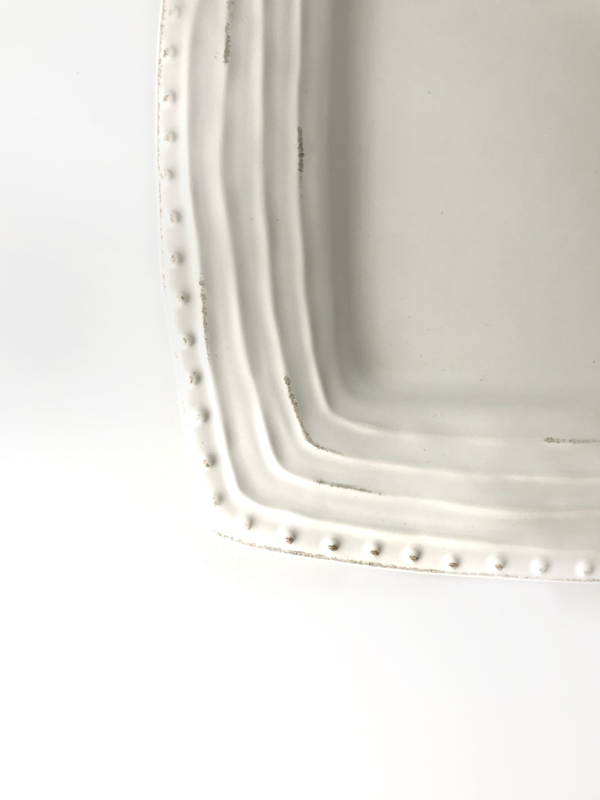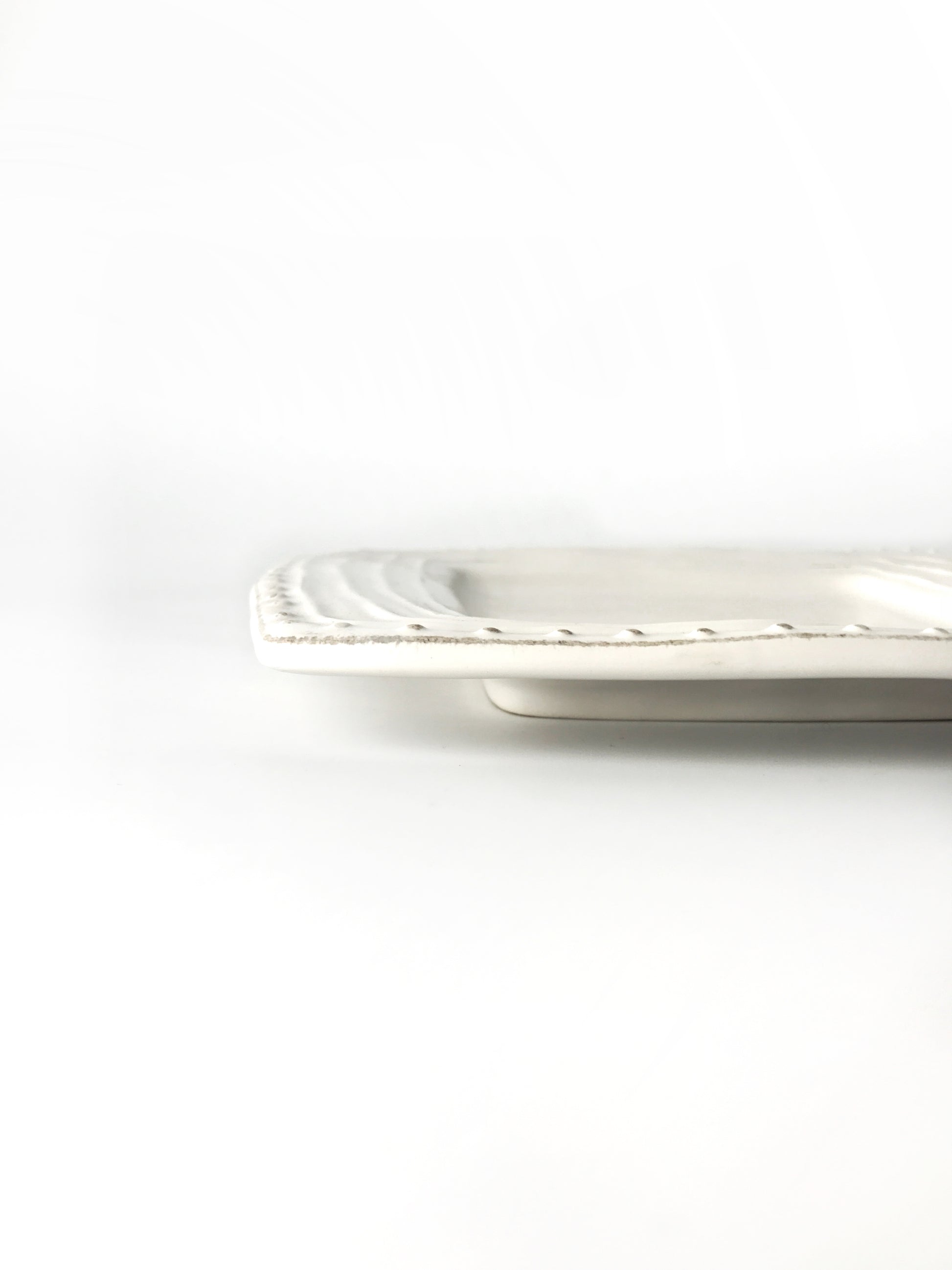 These plates are our all-time favourites and we use them at home too. They have a distinct square shape and the raised border has a lovely texture which makes everything you serve on them look fabulous. We love photographing our food on these plates because they always come out looking beautiful! The plates come in three sizes: dessert, dinner and extra large. They are dishwasher safe and made of earthenware.