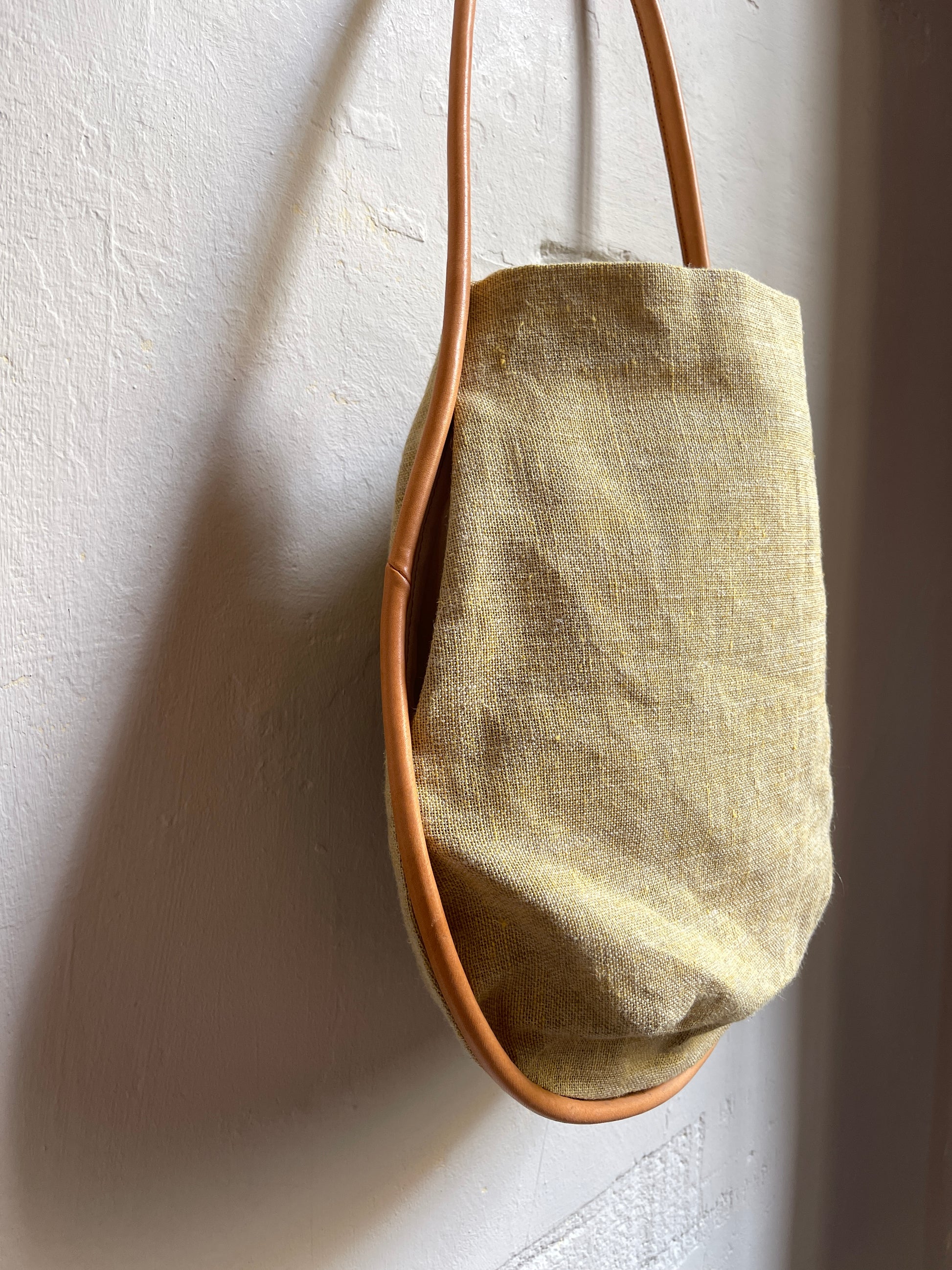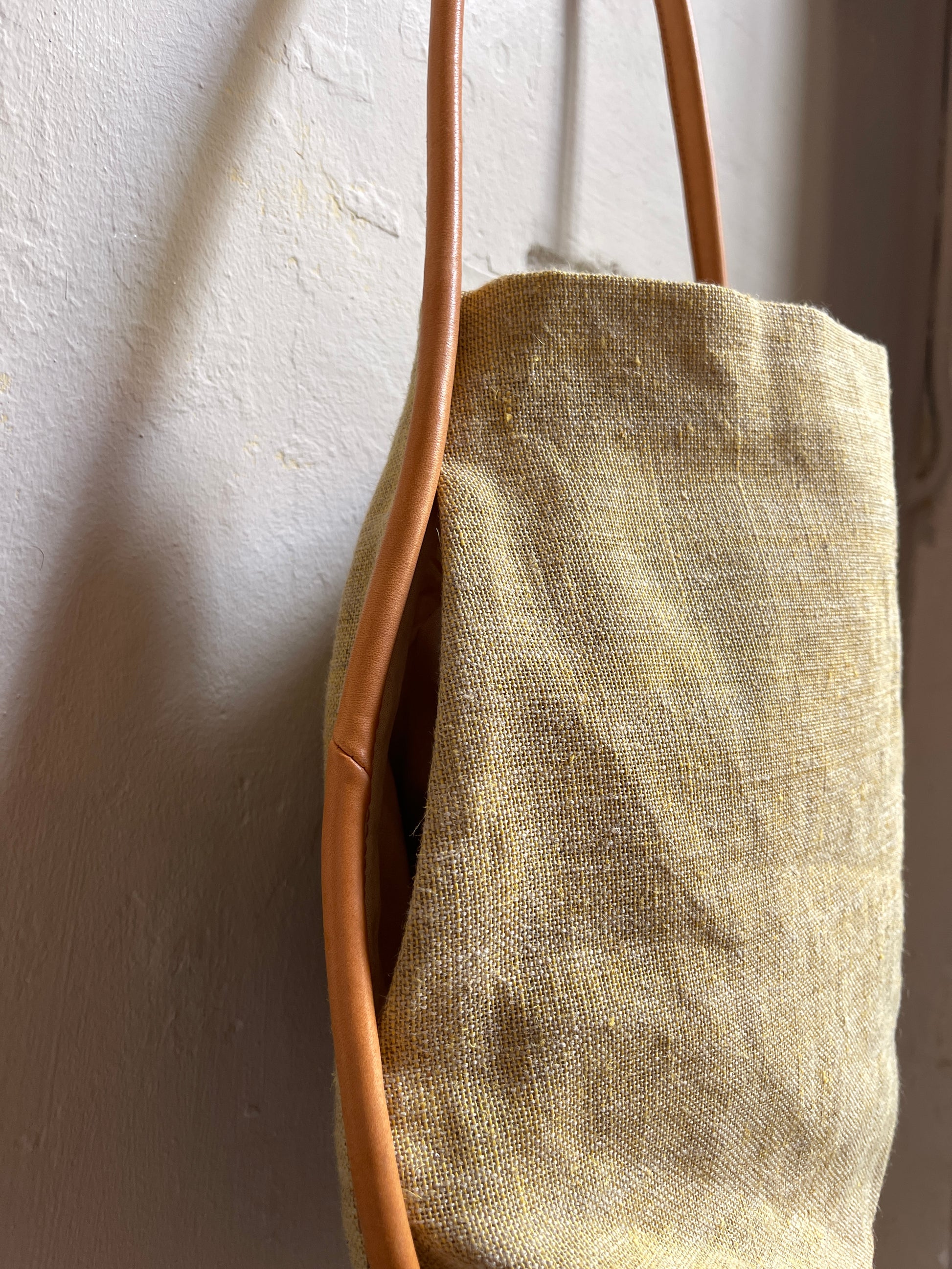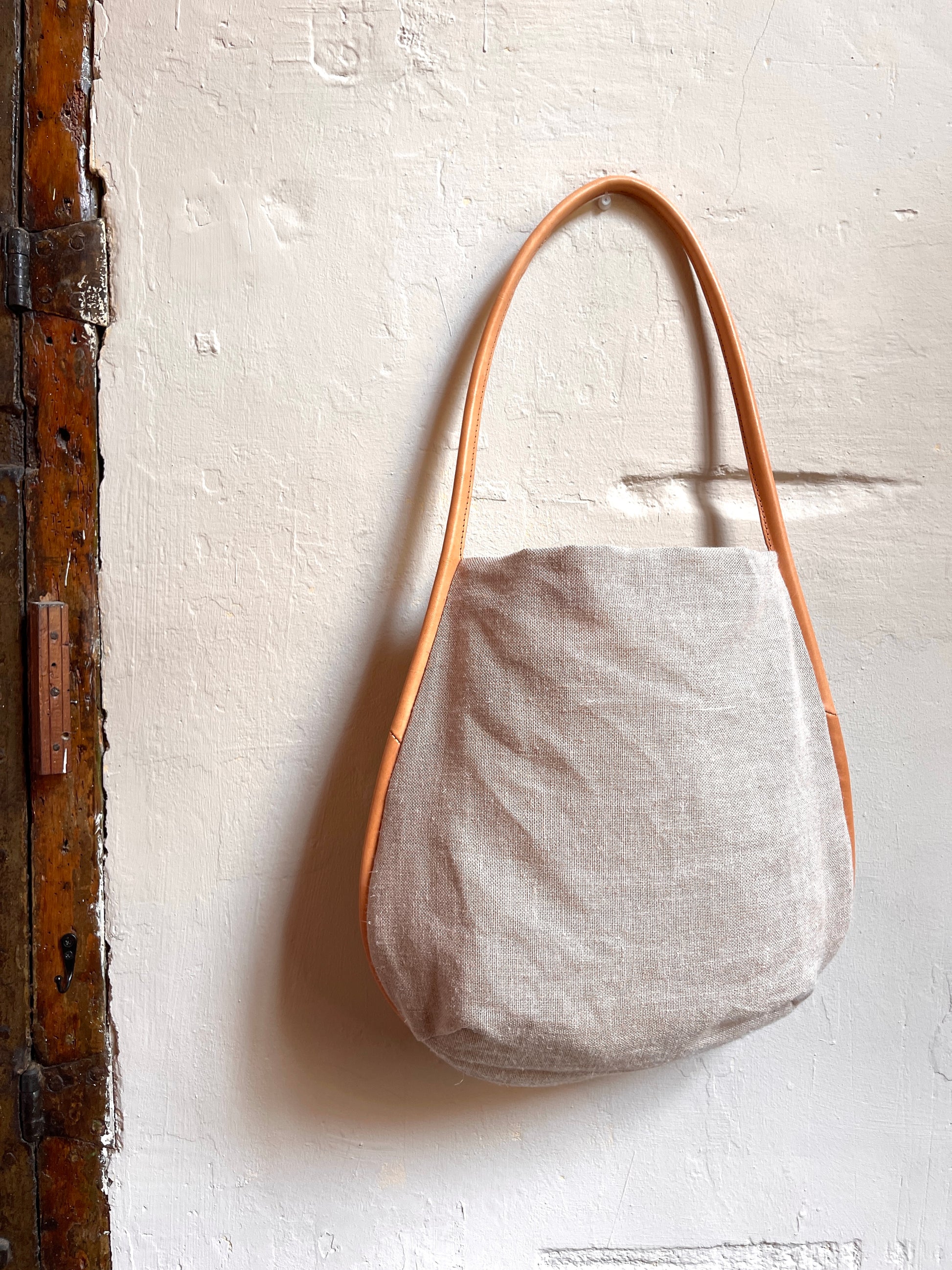 Made of leather and a lovely textured linen, this bag has a magnetic closure, two inner pockets (one with zipper) and a hidden outer pocket that can hold your keys, phone or wallet.