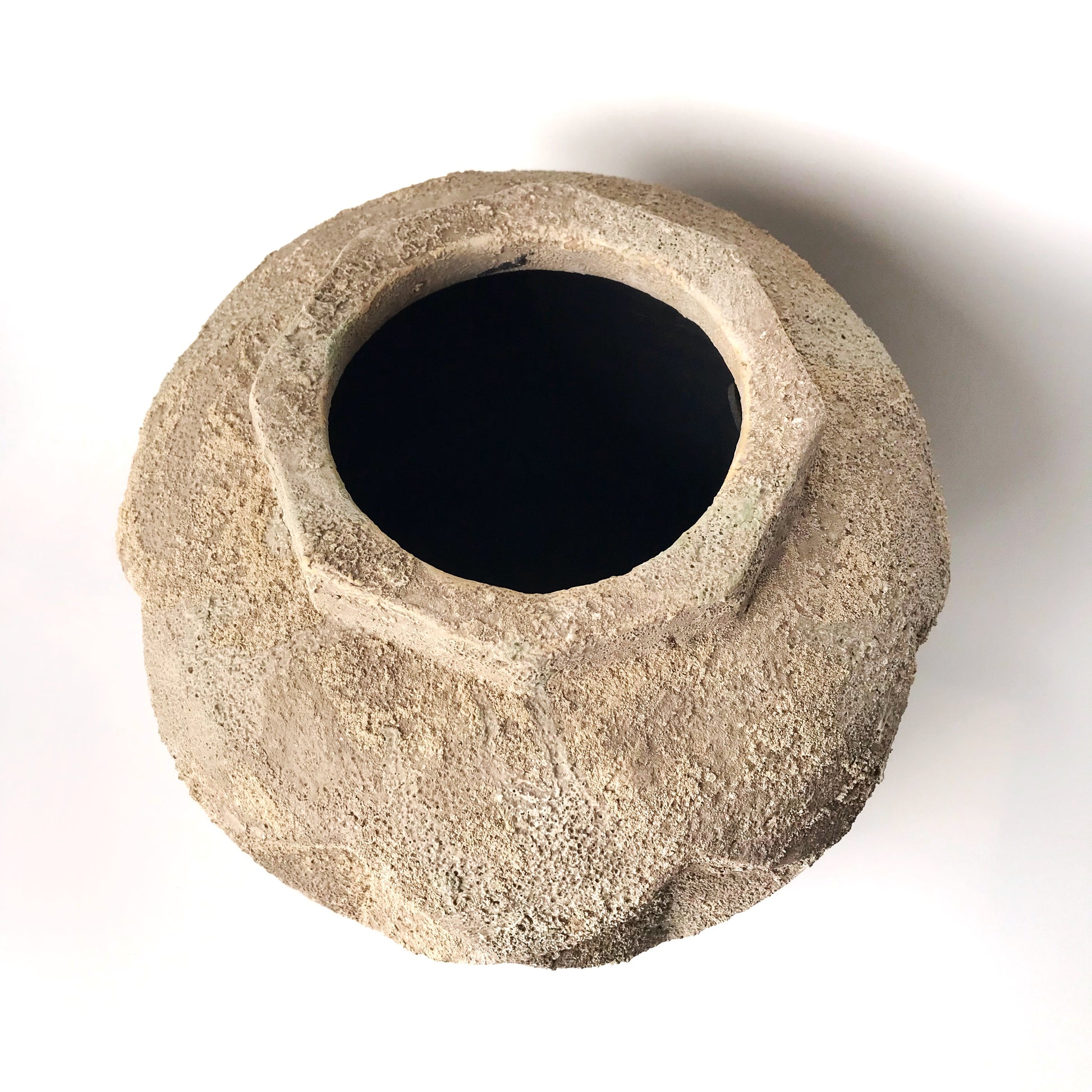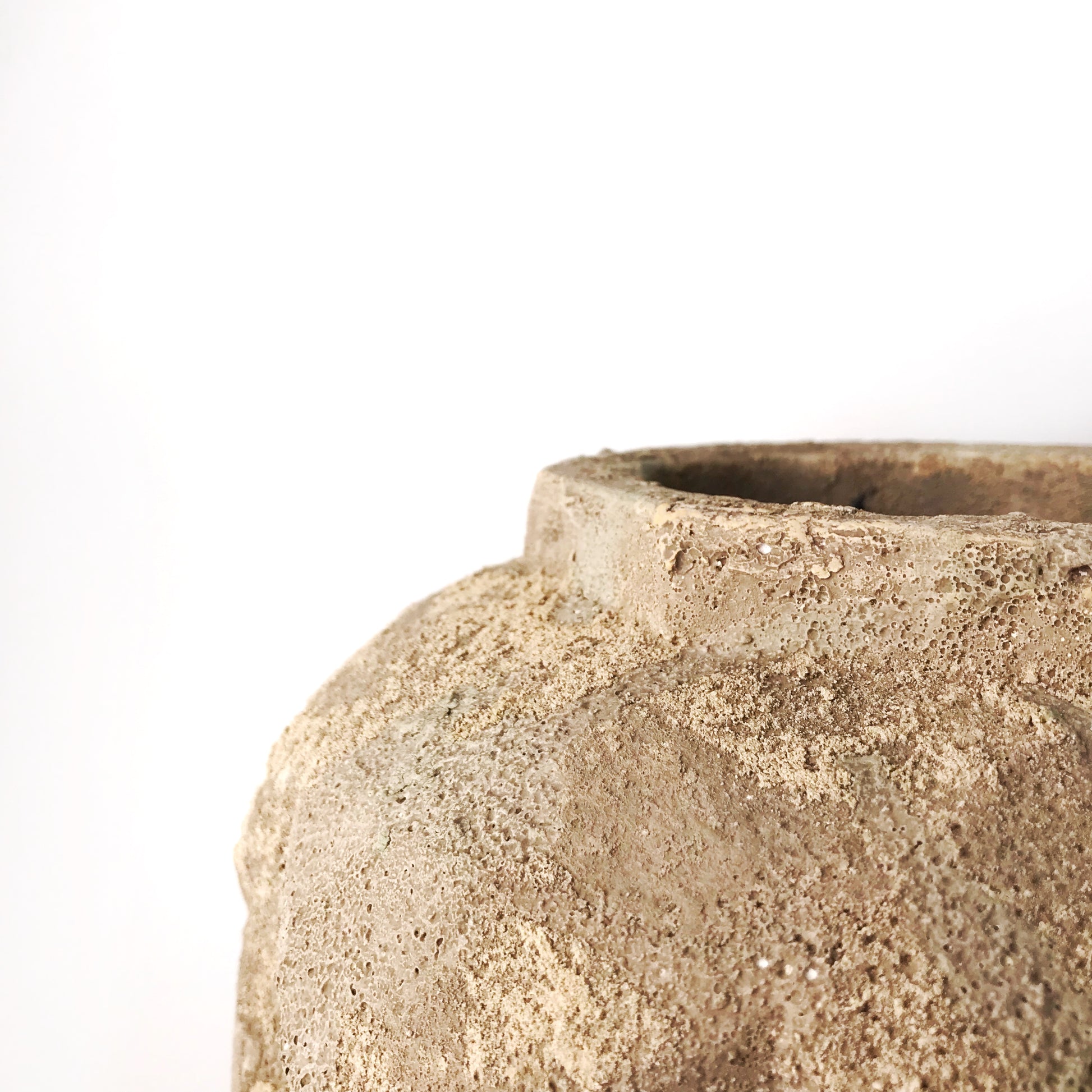 Big pots like these have so much personality that they don't need to do much but just sit there! They have a beautiful roughly textured surface and the diamond patterned surface lends that extra touch of personality. They look incredible paired together but can stand alone as well. Made of cement, painted black inside.
