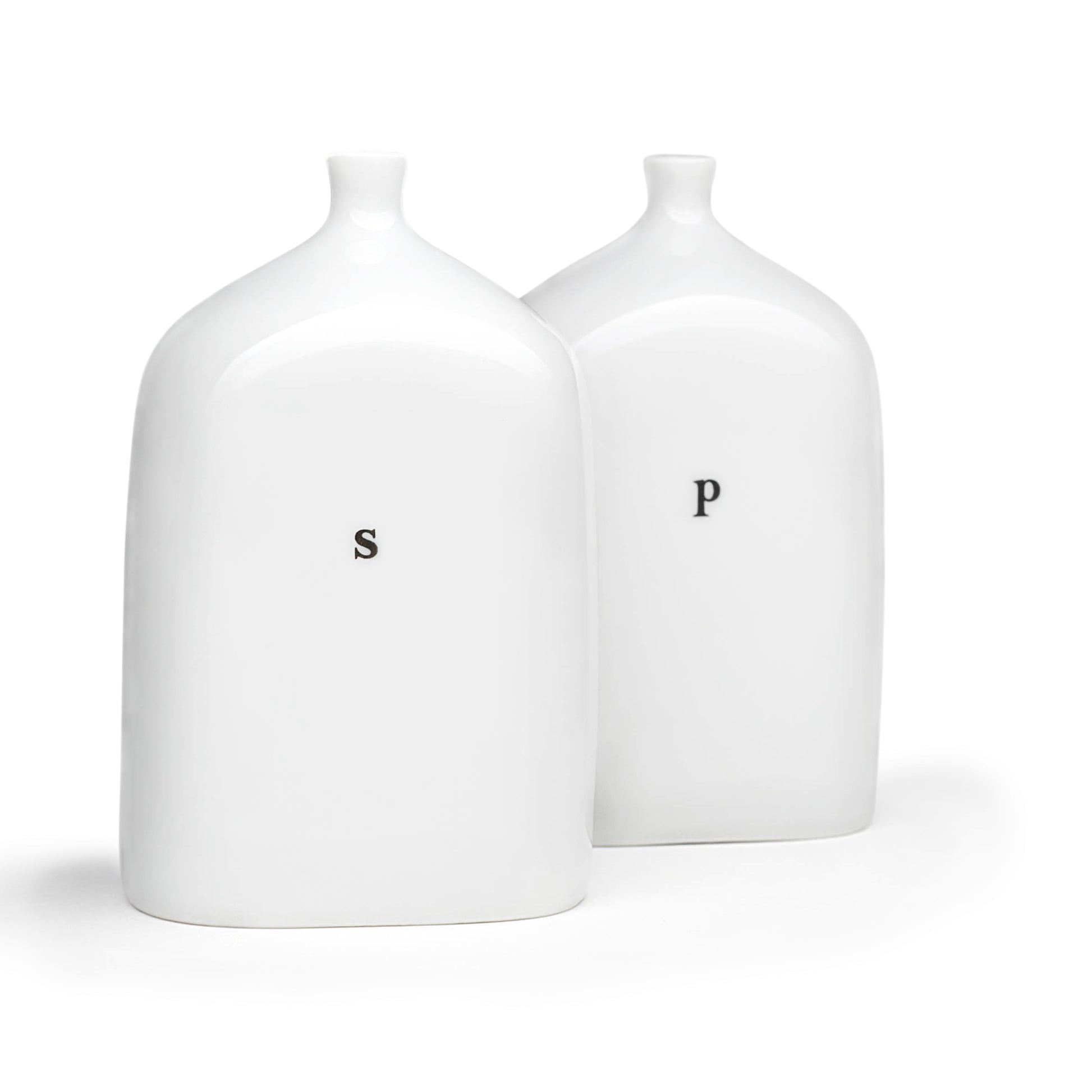 Classic, elegant, porcelain bottle salt and pepper shakers.